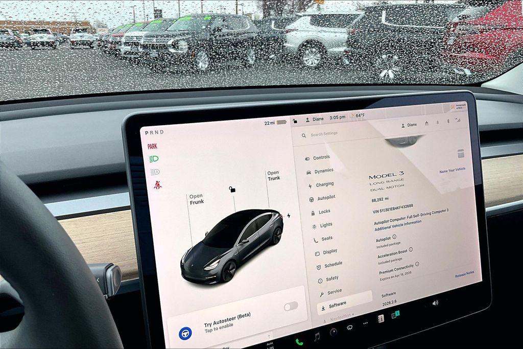 2019 TESLA MODEL 3 LONG RANGE AWD, CLEAN CARFAX, ONE OWNER, TESLA POWERTRAIN WARRANTY ON THE BATTERY AND MOTORS UNTIL 7/25/27 OR 120K MILES, 15 SPEAKER PREMIUM AUDIO SYSTEM, FULL LENGTH PANORAMIC GLASS ROOF, DUAL MOTOR ALL WHEEL DRIVE, HEATED SEATS FRONT AND REAR IN PREMIUM SYNTHETIC LEATHER, GIANT 17 INCH CENTER TOUCHSCREEN WITH NAVIGATION AND HIGH RESOLUTION CAMERAS, POWER FRONT SEATS WITH MEMORY