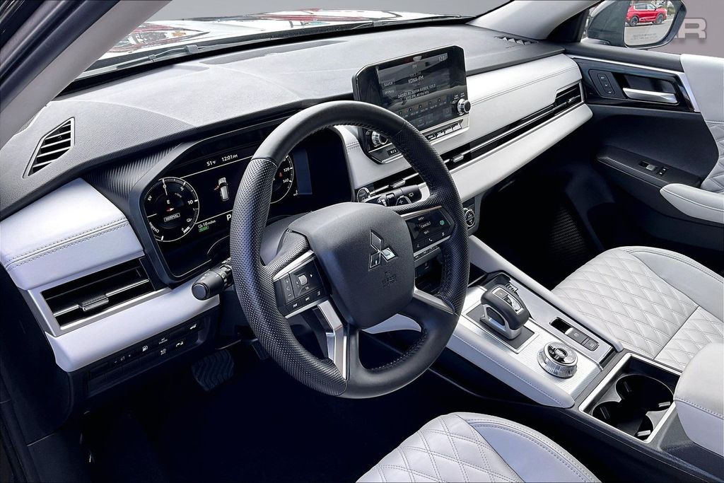 2023 MITSUBISHI OUTLANDER PHEV SEL AWD, ONE OWNER, LOW MILES, CLEAN CARFAX, FULL MITSUBISHI FACTORY WARRANTY UNTIL 2/28/29 OR 60K MILES, HYBRID POWERTRAIN WITH BOTH GAS AND ELECTRIC MOTORS GIVING YOU 64 MPGe, PLUG IT IN AND CHARGE IT AT NIGHT AND NEVER BUY GAS FOR DAILY COMMUTES, 7 PASSENGER 3 ROW SEATING IN PREMIUM LIGHT GREY LEATHER, SUPER ALL WHEEL CONTROL FOR THE BEST IN ALL WHEEL DRIVE SYSTEMS, MULTI-VIEW CAMERA SYSTEM, POWER DRIVER'S SEAT WITH POWER LUMBAR ADJUSTMENT, WIRELESS APPLE CARPLAY/ANDROID AUTO WITH A 9 INCH NAVIGATION SMARTPHONE LINK DISPLAY, SMARTPHONE WIRELESS CHARGER, MI-PILOT ASSIST WITH ADAPTIVE CRUISE CONTROL AND LANE KEEP ASSIST, AND LANE DEPARTURE PREVENTION