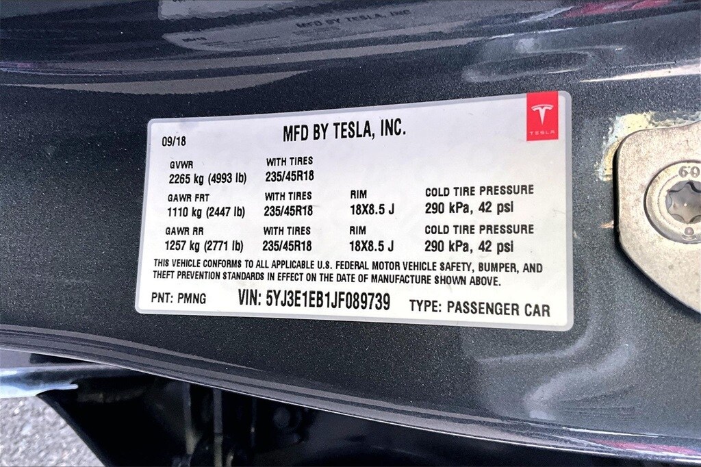 2018 TESLA MODEL 3 LONG RANGE AWD, FULL TESLA POWERTRAIN WARRANTY ON THE BATTERY AND MOTORS FOR 600 MORE MILES, AUTOPILOT FULL SELF DRIVING COMPUTER, DUAL MOTOR ALL WHEEL DRIVE, 15 SPEAKER PREMIUM AUDIO SYSTEM, GIANT TOUCHSCREEN WITH NAVIGATION, HEATED SEATS FRONT AND REAR, POWER FRONT SEATS WITH MEMORY, PREMIUM SYNTHETIC LEATHER SEATING, FULL LENGTH PANORAMIC GLASS ROOF