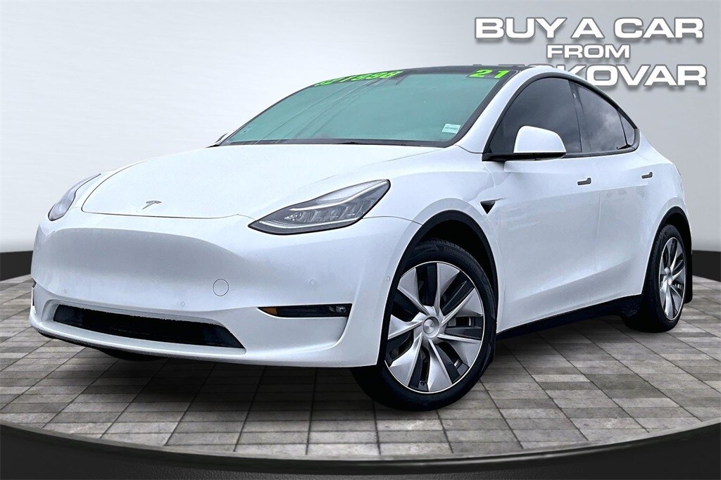 2021 TESLA MODEL Y LONG RANGE AWD, ONE OWNER, CLEAN CARFAX, 15 SPEAKER PREMIUM AUDIO SYSTEM, DUAL MOTOR ALL WHEEL DRIVE, GIANT TOUCHSCREEN WITH NAVIGATION AND HIGH RESOLUTION CAMERAS, FULL TESLA POWERTRAIN WARRANTY UNTIL 120K MILES, POWER REAR HATCH, DUAL POWER FRONT SEATS WITH MEMORY, HEATED SEATS FRONT AND REAR IN PREMIUM SYNTHETIC LEATHER, 4 BRAND NEW TIRES