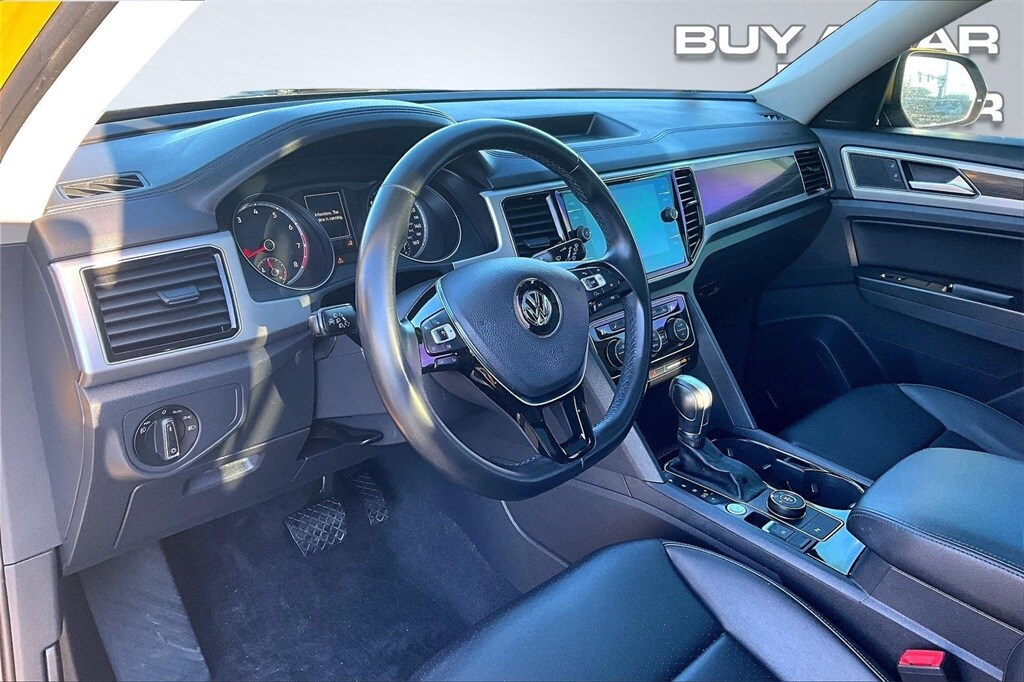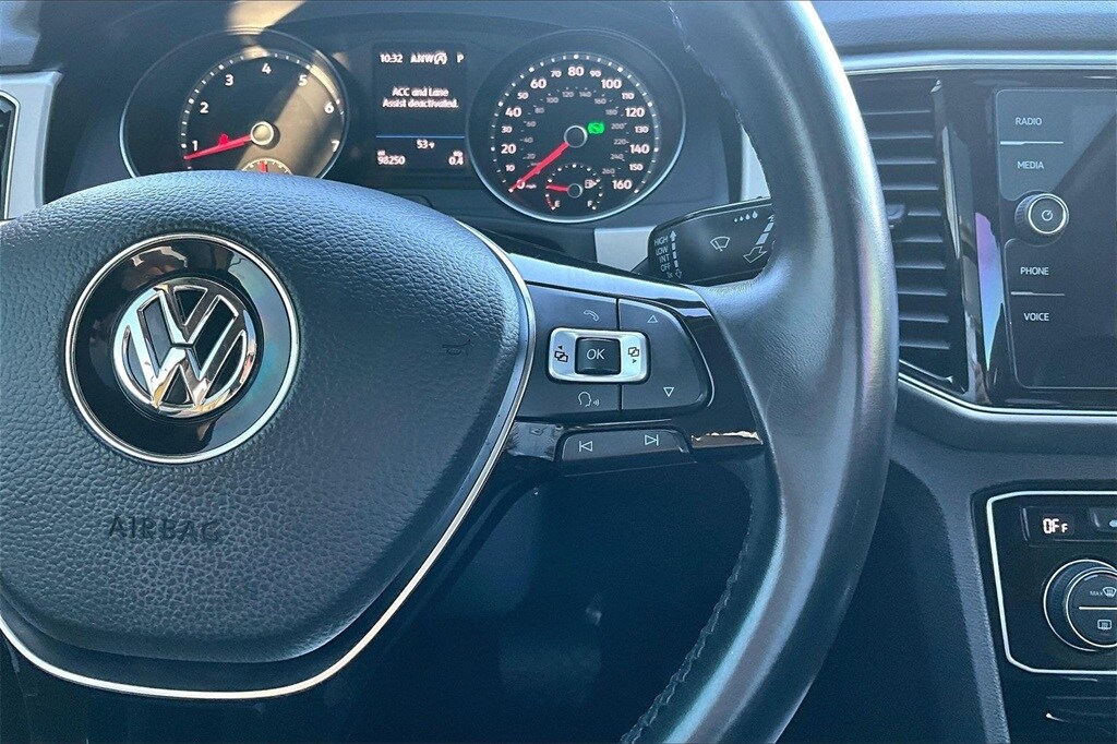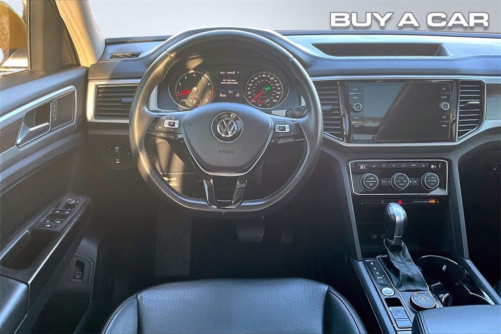 2018 VOLKSWAGON ATLAS SEL, 4 MOTION ALL WHEEL DRIVE SYSTEM, CLEAN CARFAX, 8 INCH TOUCHSCREEN CONTROL CENTER, POWER DRIVERS AND PASSENGERS SEAT WITH DRIVERS SIDE MEMORY, PREMIUM V-TECH LEATHERETTE SEATING SURFACES, HEATED SEATS, 3RD ROW SPLIT BENCH, POWER SUNROOF, POWER LIFTGATE, 18 INCH PRISMA ALLOY WHEELS, BRAKE ASSIST